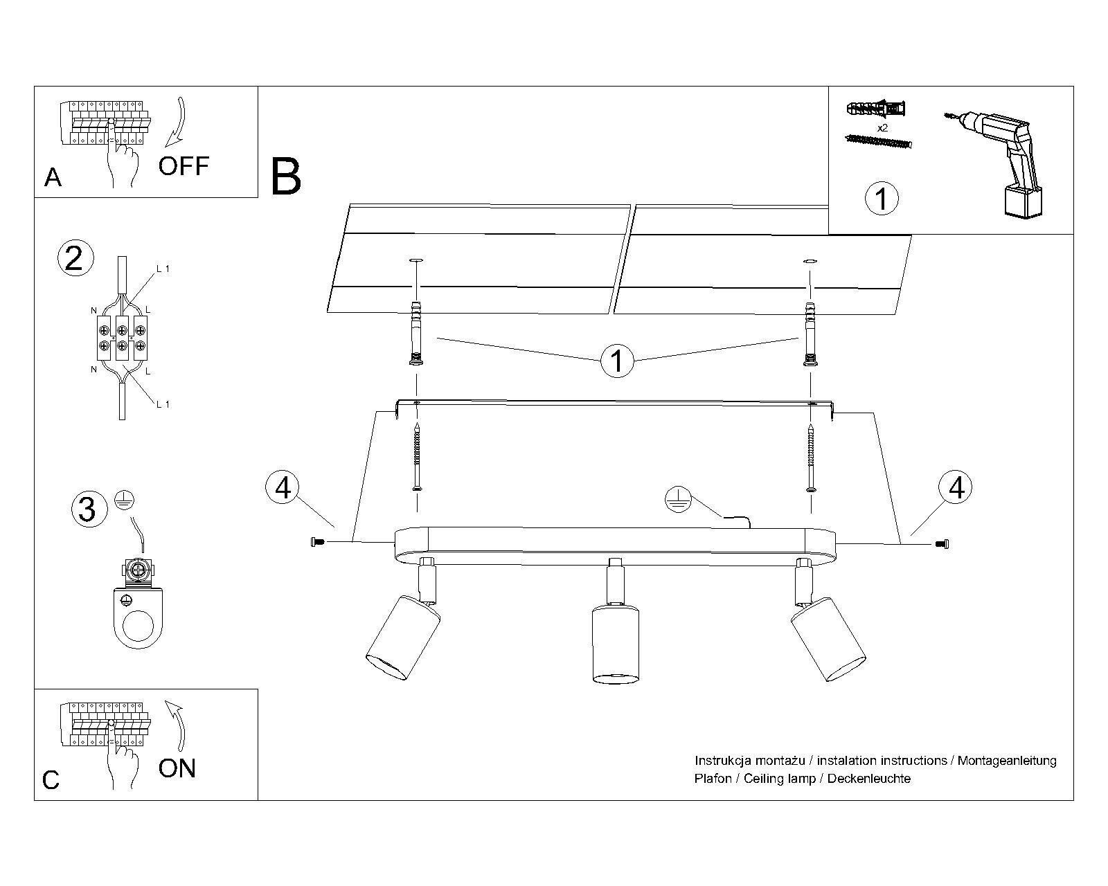 | Douille: | 3x E27 max. 60W |
